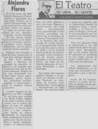 Alejandro Flores [artículo] / Mario Cánepa Guzmán. Las Últimas Noticias (Diario : Santiago, Chile)-- ene. 25, 1983, p. 37. retr. .