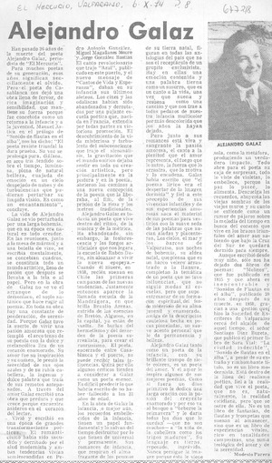 Alejandro Galaz [artículo] / Modesto Parera. El Mercurio (Diario : Valparaíso, Chile)-- oct. 6, 1974, p. 8. retr. .