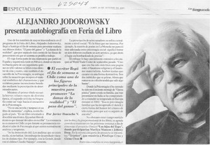 Alejandro Jodorowsky presenta autobiografía en Feria del Libro [artículo] Javier Ibacache V. La Segunda (Santiago) oct. 29, 2001, p. 38 retr. .
