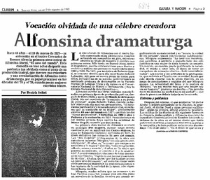 Alfonsina dramaturga vocación olvidada de una de una célebre creadora [artículo] : Beatriz Seibel.