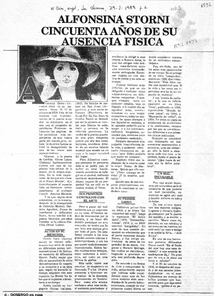 Alfonsina Storni cincuenta años de su ausencia física [artículo]. El Día (diario : La Serena, Chile)-- ene. 29, 1989, p. 6 (suplemento) .