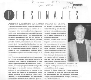 Alfonso Calderón, un notable manejo del idioma [artículo] Cultura no. 23 (dic. 1998) p. 51 retr. .