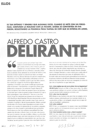 Alfredo Castro delirante [artículo] Francisca Vives Elle (Santiago) no. 84 (abr. 2001) p. 32-35 retr. .