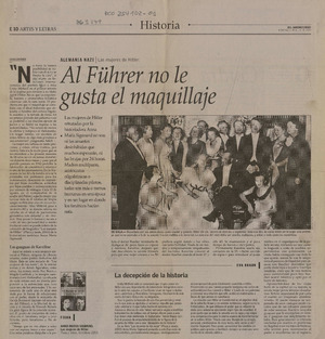 Al Führer no le gusta el maquillaje Las mujeres de Hitler / [artículo] : Oscar Contardo. El Mercurio (Santiago, Chile)-- jul. 6, 2003, p. E10. retr. .