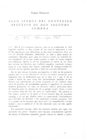 Algo acerca del contenido afectivo de don Segundo Sombra [artículo] / Yerko Moretic. Atenea-- no. 417 (jul. 1967) p. 61-67. .