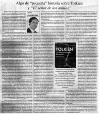 Algo de "pequeña" historia sobre Tolkien y "El señor de los anillos" [artículo] / Braulio Fernández Biggs. La Segunda (Santiago, Chile)-- jun. 19, 2003, p. 9. retr. .