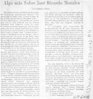 Algo más sobre José Ricardo Morales [artículo] / Martín Cerda. El Mercurio (Santiago, Chile)-- jul. 23, 1972, p. 4. .