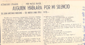 Alguien hablará por mi silencio [artículo] / Matías Rafide. La Prensa (Curicó, Chile)-- nov. 4, 1978, p. 3. .