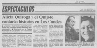 Alicia Quiroga y el Quijote cantarán historias en Las Condes. [artículo] La Segunda (Santiago, Chile)-- mar. 15, 1983, p. 18. fot. .