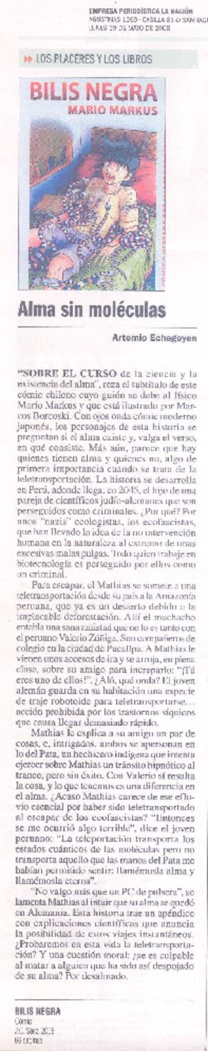 Alma sin moléculas [artículo] / Artemio Echegoyen. La Nación (Diario: Santiago, Chile)-- mayo 19, 2008, p. 32. .