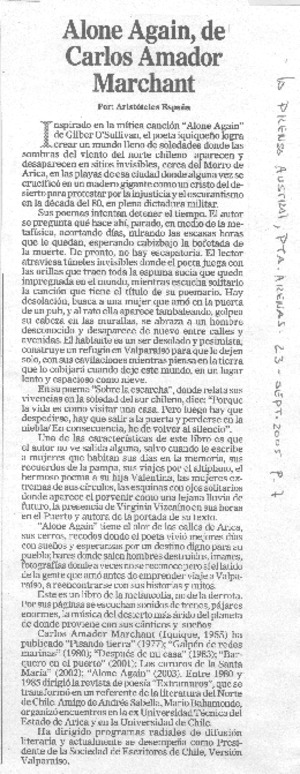 Alone Again, de Carlos Amador Marchant. [artículo] España, Aristóteles La Prensa Austral (Punta Arenas, Chile)-- sept. 23, 2005, p. 7 .