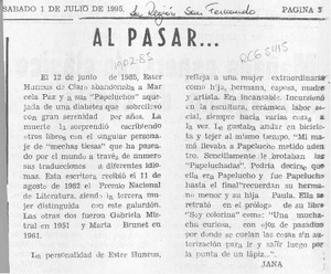Al pasar -- [artículo] / Jana. La Región (San Fernando). -- jul. 1, 1995, p. 3. .