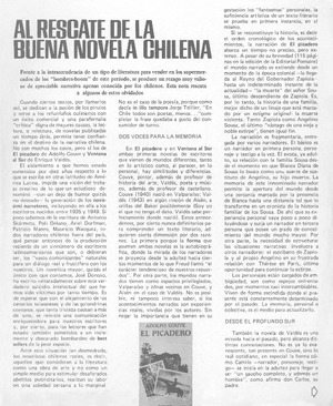 al rescate de la buena novela chilena [artículo] / Mariano Aguirre Cauce (Santiago, Chile)-- dic. 6, 1983, p. 23-24. il. .