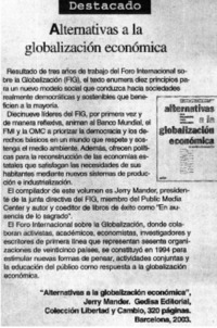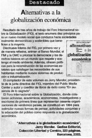 Alternativas a la globalización económica. [artículo] El Sur (diario : Concepción, Chile)-- ago. 31, 2003, p. 6 (suplemento "Actual") il. .