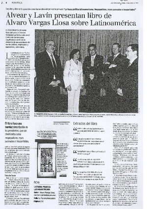 Alvear y Lavín presentan libro de Alvaro Vargas Llosa sobre Latinoamérica. [artículo] La Tercera (Diario: Santiago, Chile)-- sept. 7, 2004, p. 6 retr. .