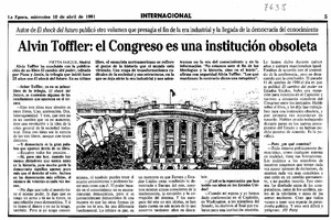 Alvin Toffler: el Congreso es una institución obsoleta [artículo] / Fietta Jarque. La Epoca-- abr. 10, 1991, p. 5. .