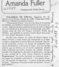 Amanda Fuller [artículo] / Gumercindo Pinto Devia. El Magallanes. -- ago. 7, 1988, p. 3 (suplemento) .