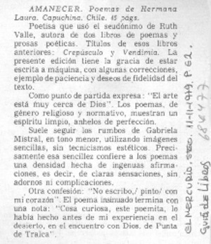 Amanecer. [artículo] El Mercurio (Diario : Santiago, Chile)-- feb. 11, 1979, p. E2. .