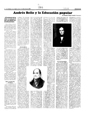 Andrés Bello y la educación popular [artículo] / Reinaldo Villegas Astudillo. La Tribuna (Diario : Los Angeles, Chile)-- dic. 1, 2003, p. 2. retr. .