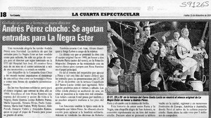 Andrés Pérez chocho, se agotan entradas para La Negra Ester [artículo] La Cuarta (Santiago) dic. 25, 2001, p. 18 fot. .