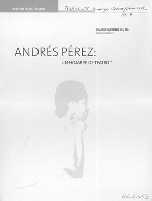 Andrés Pérez, un hombre de teatro [artículo] Eduardo Guerrero del Río Teatrae (Santiago) no. 5 (verano/otoño 2002) p. 4-11 fot. .