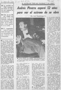 Andrés Pizarro esperó 12 años para ver el estreno de su obra [artículo] / Italo Passalacqua C. La Segunda (Santiago, Chile)-- ago. 17, 1977, p. 26. retr. .