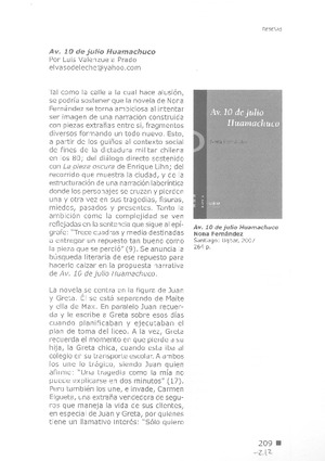Av. 10 de Julio Huamachuco [artículo] / Luis Valenzuela Prado. Taller de Letras (Revista : Chile)-- no. 43 (2008) p. 209-212. .