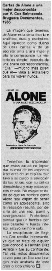 Alone - Autoras chilenas - Cartas de Alone a una mujer desconocida - Cox Balmaceda, Virginia