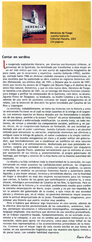 Sección Referencias Críticas. Gallardo, Juanita 2003.