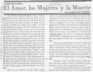 El amor, las mujeres y la muerte [artículo] / Holmes, Sherlock. Las Últimas Noticias (Diario : Santiago, Chile)-- abr. 23, 1979, p. 5. .
