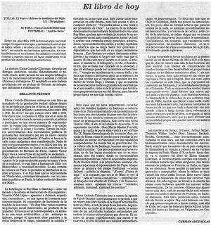 El Libro de hoy [artículo] / Germán Arciniegas. La Discusión (Chillán, Chile)-- sept. 20, 1982, p. 3. .