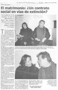 El matrimonio: ¿un contrato social en vías de extinción? [artículo] / Julio César Moreira El Rancagüino (Diario : Rancagua, Chile) jul. 16, 2004, p. 22. .