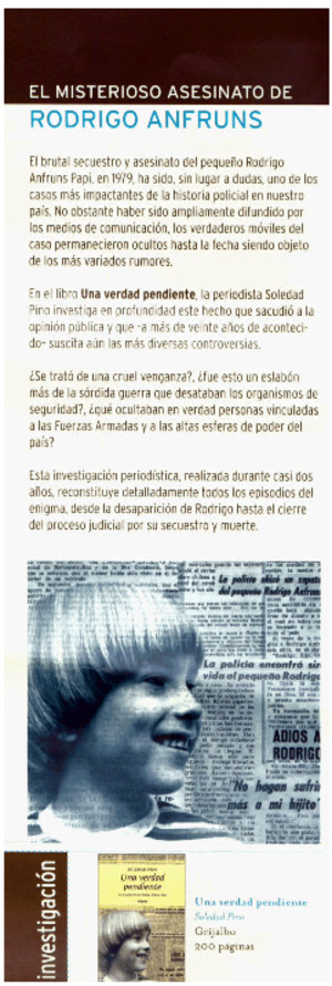 El misterioso asesinato de Rodrigo Anfruns. [artículo] RHM Libros (Santiago, Chile)-- no. 4 (nov. 2003) p. 11. il. .