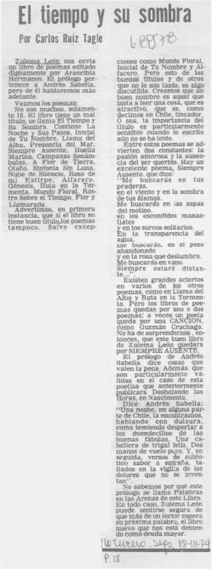 El tiempo y su sombra [artículo] / Carlos Ruiz-Tagle. La Tercera (Diario : Santiago, Chile)-- mar. 18, 1979, p. 18. .