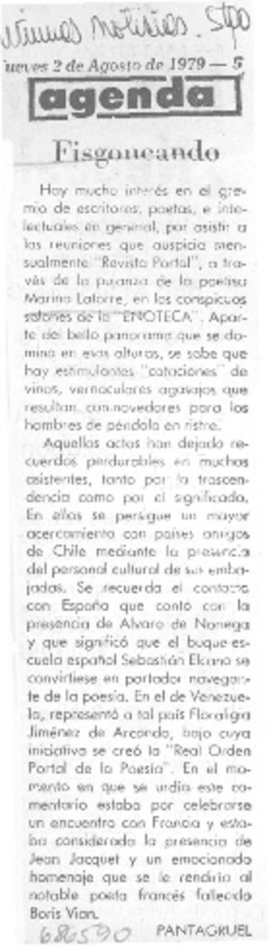 Fisgoneando [artículo] / Pantagruel. Las Últimas Noticias (Diario : Santiago, Chile)-- ago. 2, 1979, p. 5. .