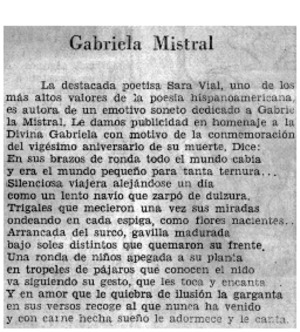 Gabriela Mistral. [artículo] La Tribuna (Diario : Los Angeles, Chile)-- ene. 11, 1977, p. 5. .