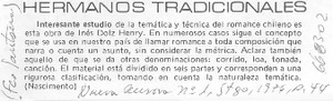 Hermanos tradicionales [artículo] / Francisco Santana. Nueva Aurora (Santiago, Chile)-- no. 1 (1976) p. 44. .