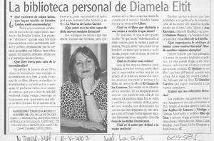La biblioteca personal de Diamela Eltit (entrevista) [artículo]. La Tercera (Diario : Santiago, Chile)-- mayo 10, 2002, p. 14 (suplemento "Guía") .