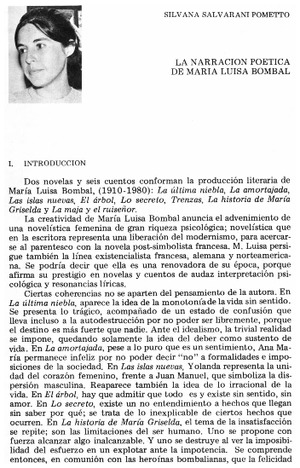 La narración poetica de María Luisa Bombal [artículo] Silvana Salvarani Pometto.