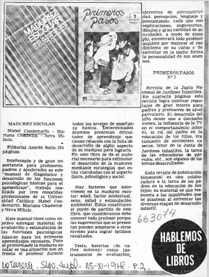 Madurez escolar. [artículo] La Tercera (Santiago, Chile)-- nov. 15, 1978, p. 3 (suplemento) il. .