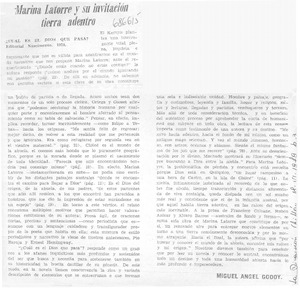 Marina Latorre y su invitación tierra adentro [artículo] Miguel Angel Godoy.