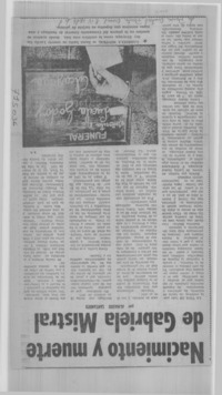 Nacimiento y muerte de Gabriela Mistral [artículo] / Almagro Santander. La Prensa Austral (Punta Arenas, Chile)-- abr. 8, 1976, p. 7. .