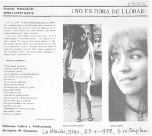 ¡No es hora de llorar! [artículo] La Nación (Diario : Santiago, Chile)-- feb. 27, 1972, p. 14 (suplemento) retr. .