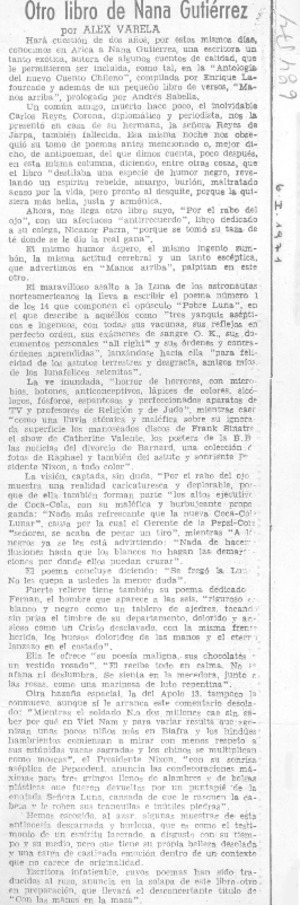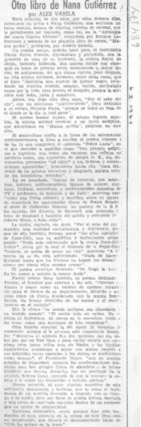 Otro libro de Nana Gutiérrez [artículo] / Alex Varela. El Mercurio (Diario : Santiago, Chile)-- ene. 6, 1971, p. 3. .