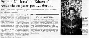 Premio Nacional de Educación recuerda su paso por La Serena. [artículo] El Día (diario : La Serena, Chile)-- sept. 15, 2003, p. 9. retr. .