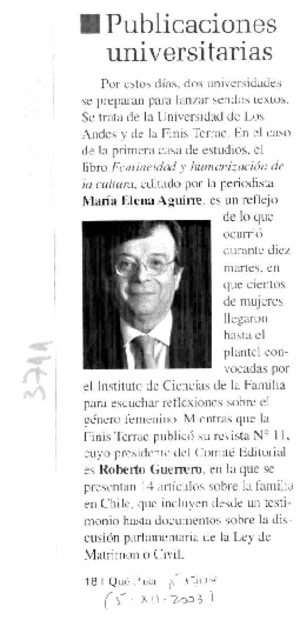 Publicaciones universitarias. [artículo] Qué Pasa (Revista : Santiago, Chile)-- no. 1704 (dic. 5, 2003) p. 18. .