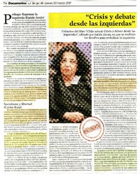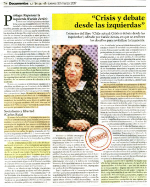 "Crisis y debate desde las izquierdas". [artículo] La Segunda (Diario : Santiago, Chile)-- mar. 30, 2017, p. 24-25. .