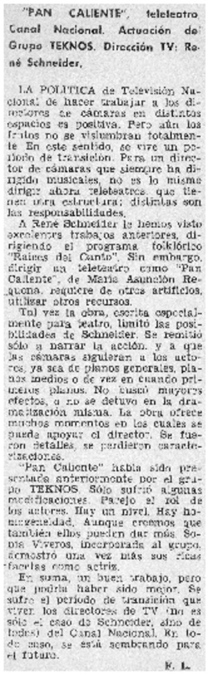 "Pan caliente" [artículo] / F.L. Telecrán (Santiago, Chile)-- no. 98 (jul. 23, 1971) p. 40. .