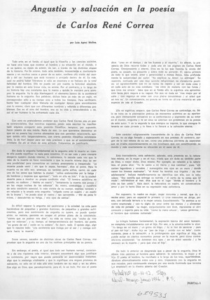 Angustia y salvación en la poesía de Carlos René Correa [artículo] / Luis Agoni Molina. Portal (Santiago, Chile)-- no. 10-11-12 (abr. mayo jun. 1976) p. 5. .