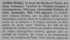 Anima mundi, el alma del mundo en Platón - Autores chilenos - Velásquez, Oscar